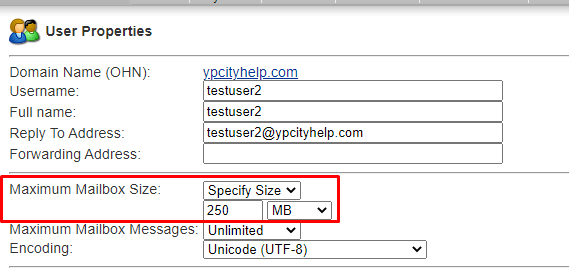 Set this to specify size, and set their max. The default is 250mb. Ideally we don't want these to get very big, and instead ask our users to back up their own email in their email client (using pop). Do not ever set a customer mailbox to unlimited.