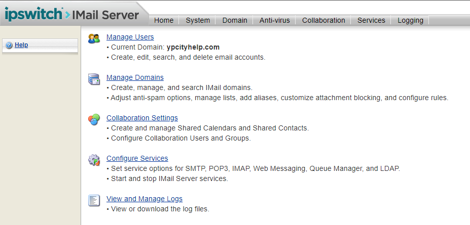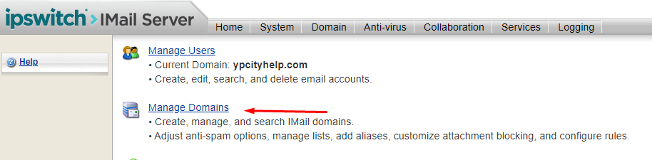 To add customer domains, we'll first select "Manage Domains" link on the home page, as shown.