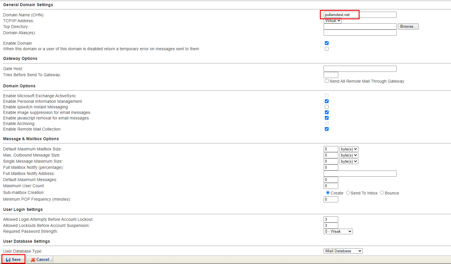 Once here, we'll simply adjust Maximum Mailbox Size.
