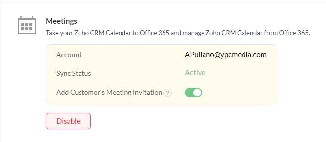 Any meeting created in this Zoho CRM Calendar in Office 365 will be automatically captured in Zoho CRM.